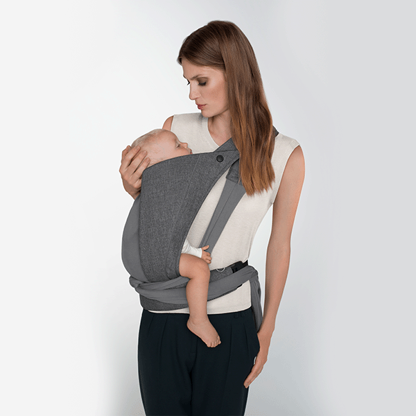 - Frontal, cu fața îndreptată către pieptul purtătorului. Aici bebelușul va asuma poziția de ”broscuță” ce facilitează o creștere corectă și sănătoasă a șoldurilor.